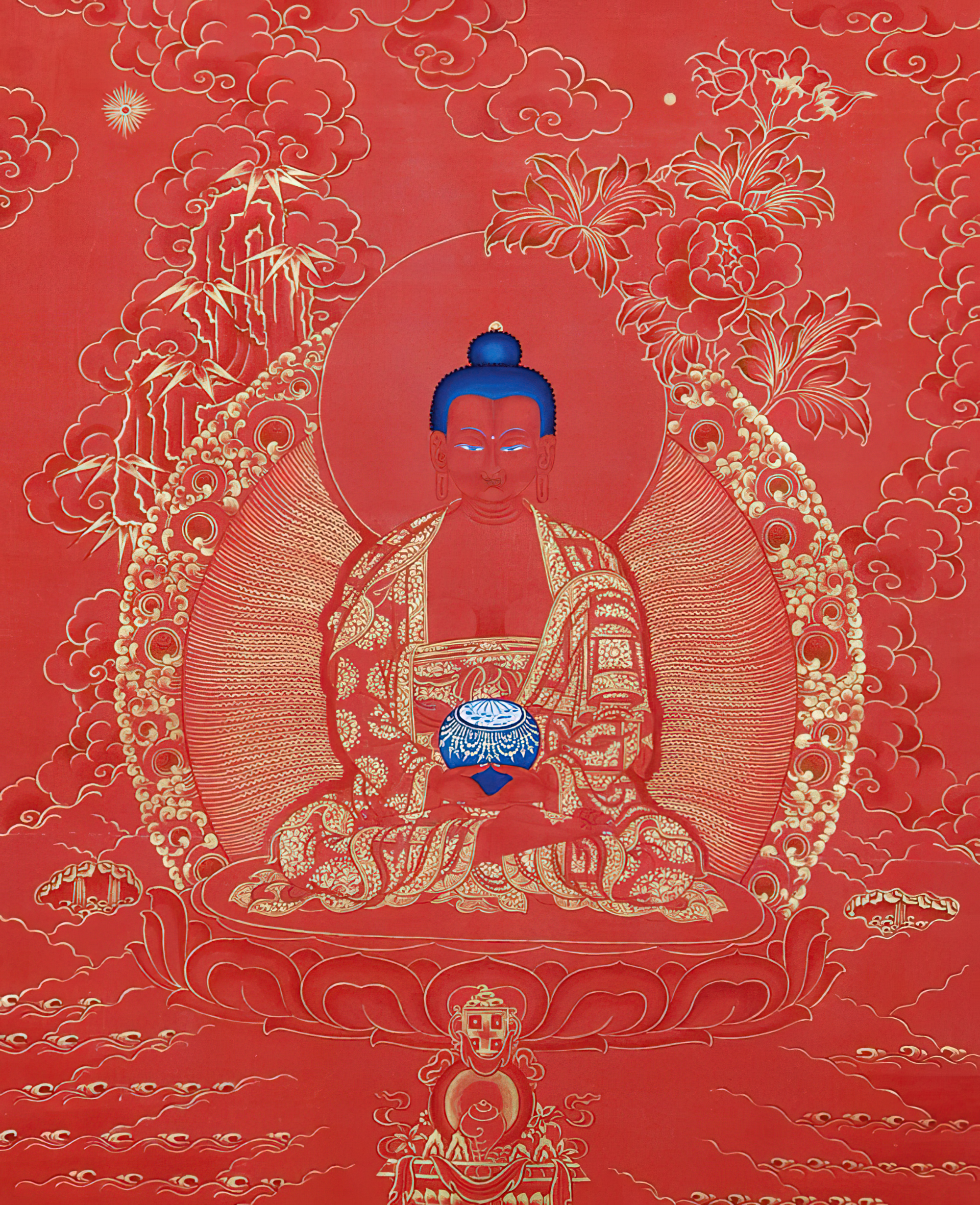 The figures shown in thangka paintings are usually depictions of visions that appeared to great spiritual masters at moments of realization, which were then recorded and incorporated into Buddhist scripture. The proportions are considered sacred, as not only are they exact representations of Buddhist deities, but also the visual expression of spiritual realizations that occurred at the time of a vision.
